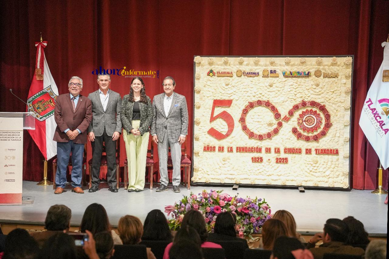 En un acto lleno de simbolismo y orgullo por la historia de la ciudad capital, el alcalde Alfonso Sánchez García encabezó la develación de la placa conmemorativa por los 500 años de la Fundación de Tlaxcala, ceremonia que tuvo lugar en el Teatro Xicohténcatl, recinto que engalanó la ocasión.