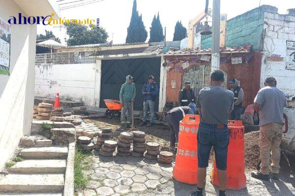Ayuntamiento de Tlaxcala realiza trabajo integral de renivelación de adoquines en Ocotlán